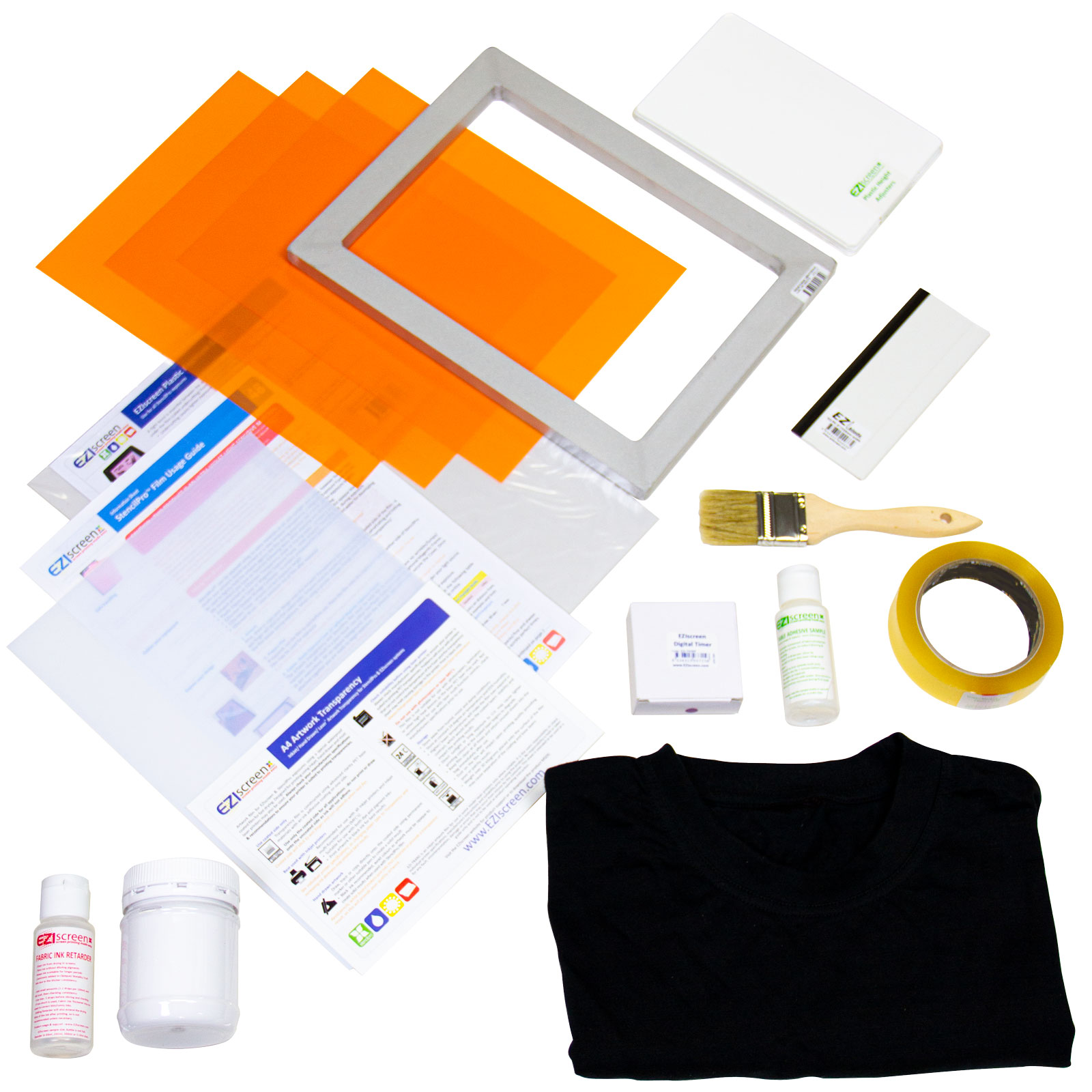 EZIscreen Dark T-shirt/ Fabric Supercover Printing Kit with Printing lesson & bonus practice t-shirt. Specialised equipment for dark fabrics.
