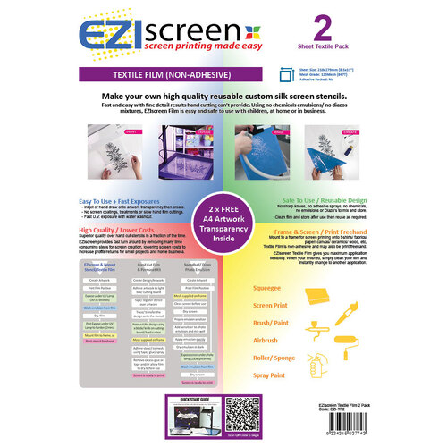 EZIscreen Textile Film - Pack 2 plus Artwork Transparency | U.V. Exposure + Water | Non-toxic Chemical Free Screen Making