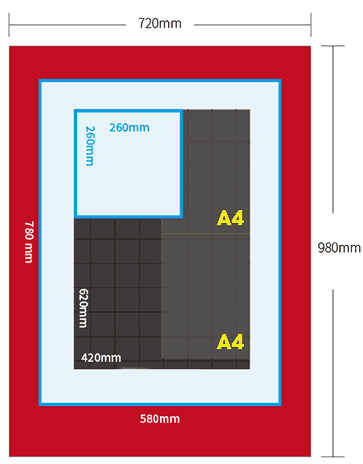 Maximum 580mm (width) x 780mm (length)